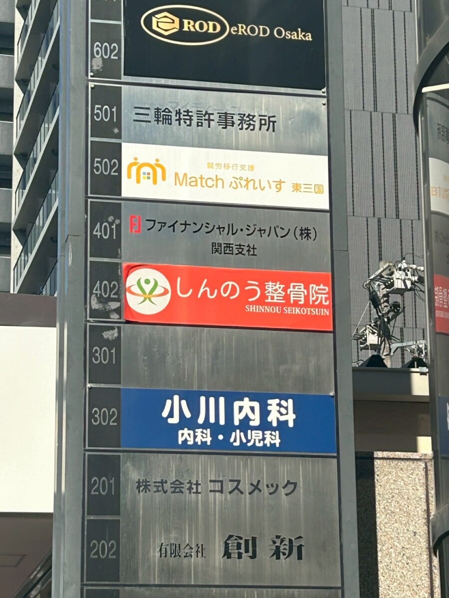 大阪市東三国のテナントビルにて営業されている整骨院