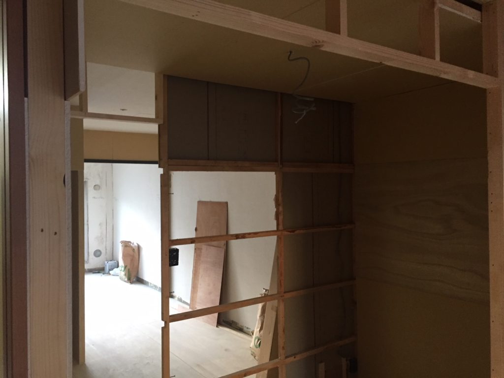 全体像はまだお披露目できませんが、一見クローゼットを造作しているように見せて・・・実はご主人様ご希望の書斎スペースです!(^^)!