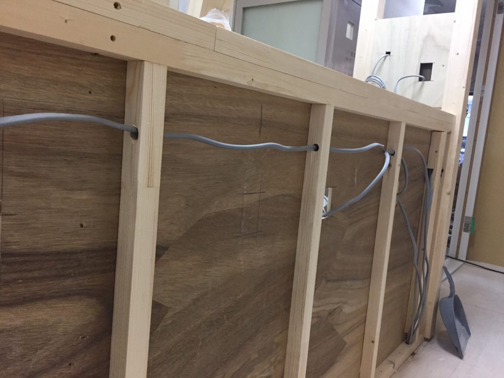 キッチンの前に造作でカウンターです。ここも全貌はまだ明かせませんが楽しみな処なんです😁